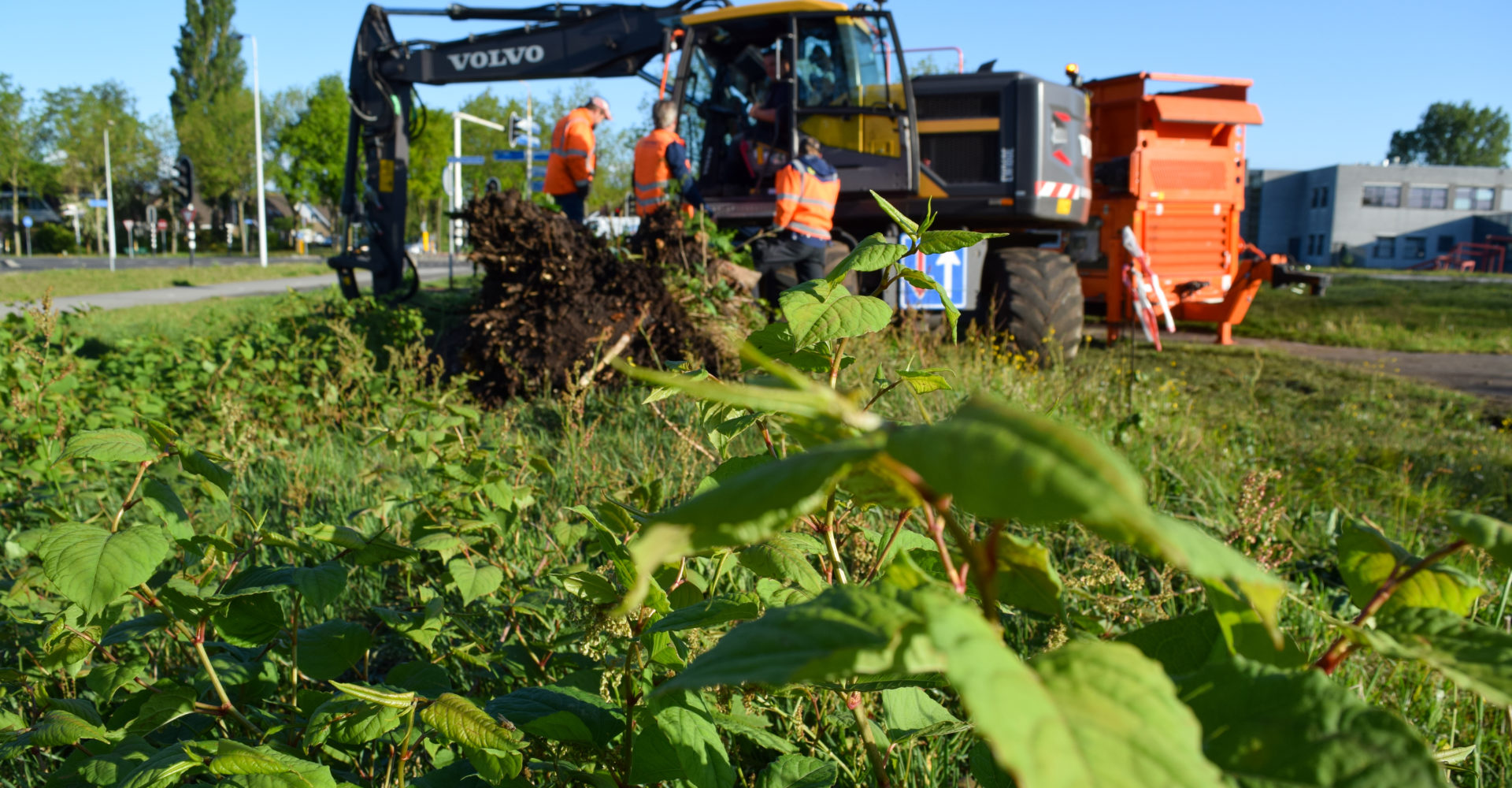 Voor gemeente Heerenveen past Joost Visser Infra mechanische bestrijding van de Japanse Duizendknoop toe.